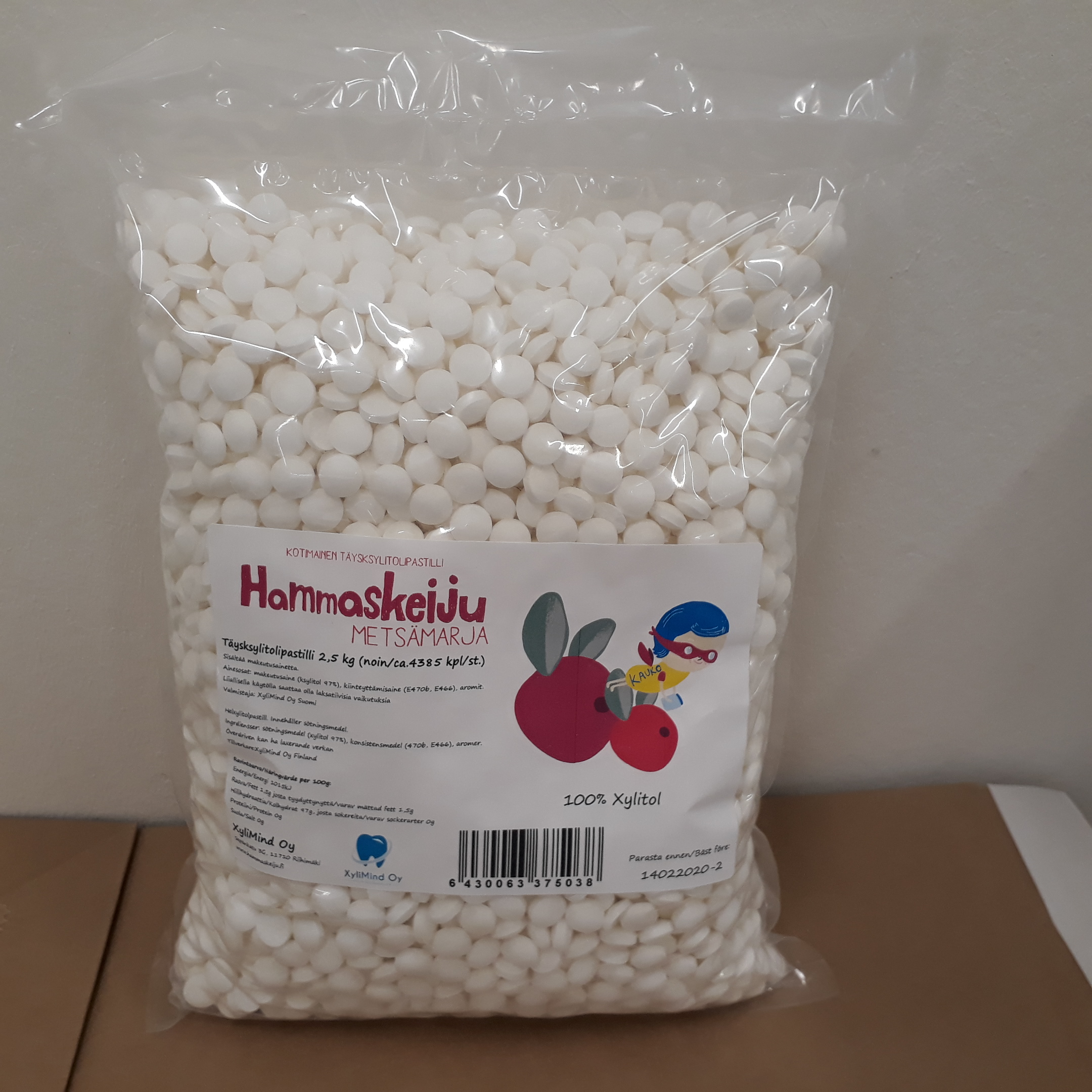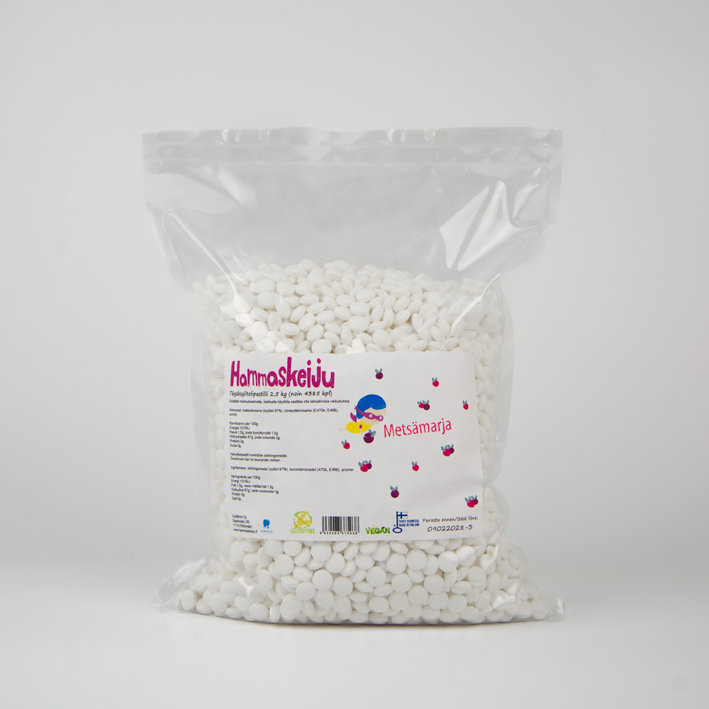 Metsämarjan makuinen Hammaskeiju täysksylitolipastilli, 2,5 kg (noin 4 380 kpl).