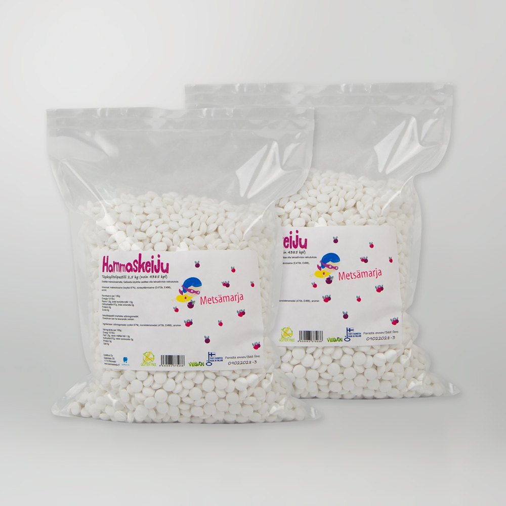 Hammaskeiju Metsämarja, täysksylitolipastilli 5 kg (noin 8700 kpl).